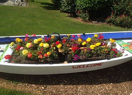Hand cut and painted flowers, butterflies and signage for year-round  maintenance-free garden colour